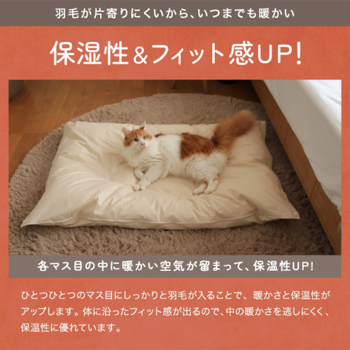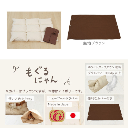 - 【ブラウン・ホック式】ペットの羽毛ふとん「もぐるにゃん」Mサイズ カバー付_AI-J204-br