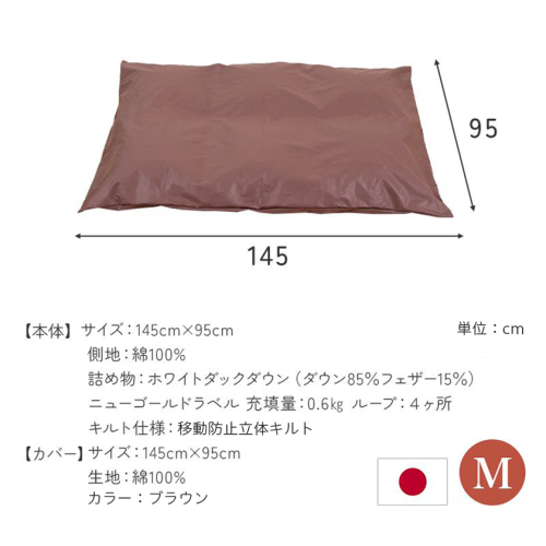 【ブラウン・ホック式】ペットの羽毛ふとん「もぐるにゃん」Mサイズ カバー付_AI-J204-br