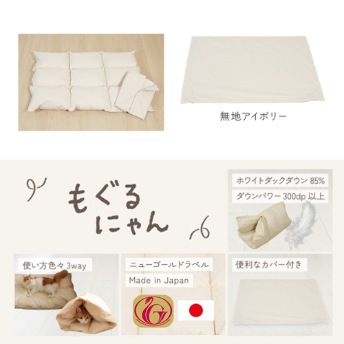 【アイボリー・ホック式】ペットの羽毛ふとん「もぐるにゃん」Mサイズ カバー付_AI-J204-iv