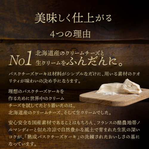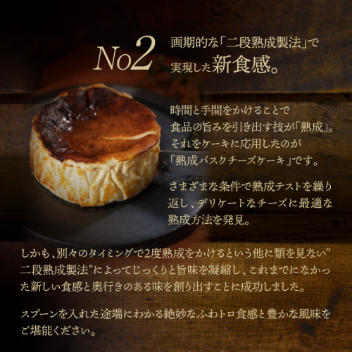 「熟成バスクチーズケーキ」ならではの豊かな風味とまろやかな食べ心地が堪能できます。