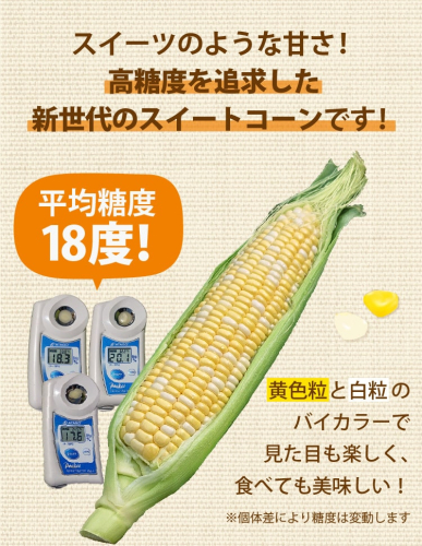 ※とうもろこしは鮮度が落ちやすい野菜ですので、お手元に到着後の糖度は減少している場合があります※